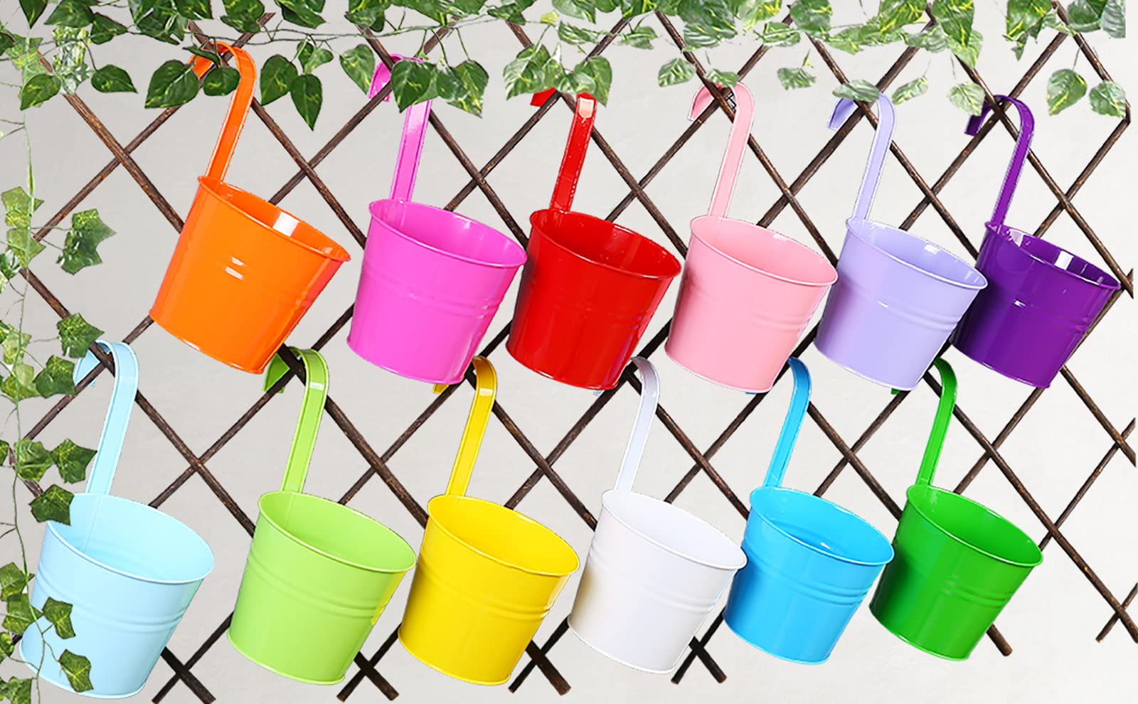 Hanging Flower Pots With Drainage Hole 16 Cm 12 Pieces Large Metal Hanging Planters With Removable Hook Garden Flower Vase Bucket For Indoor Outdoor Balcony Fence Home Decoration Amazon De Garden